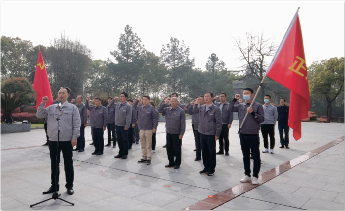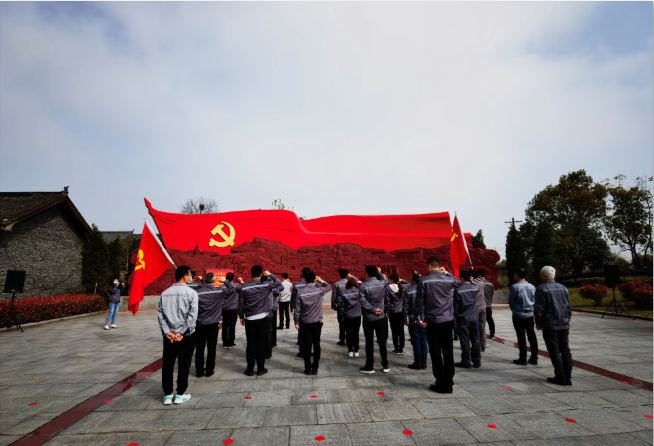大家走進(jìn)陳潭秋故居,被一幅幅照片和一件件實(shí)物所吸引,通過(guò)講解員激情的介紹中國(guó)共產(chǎn)黨創(chuàng)始人之一陳潭秋的光輝事跡,大家激情澎湃、無(wú)不贊嘆!在故居主題廣場(chǎng)前,面對(duì)巨幅黨旗浮雕,公司董事長(zhǎng)、黨支部書(shū)記管正兵帶領(lǐng)全體黨員重溫入黨誓詞。