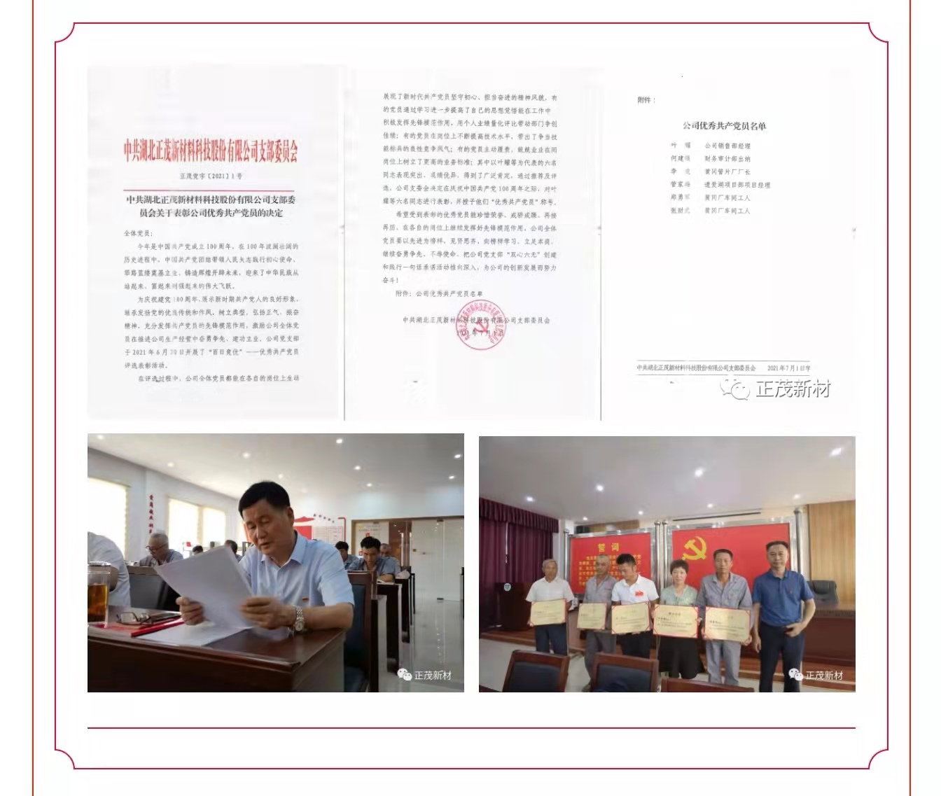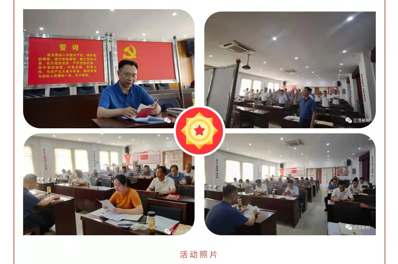 2021年7月30日,湖北正茂新材料科技股份有限公司黨支部公司全體黨員、入黨積極分子以“砥礪初心向復興、抖擻精神再出發(fā)”為主題,舉行了本月支部主題黨日活動。