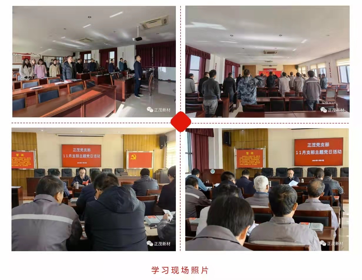2021年11月27日,湖北正茂新材料科技股份有限公司黨支部公司全體黨員、入黨積極分子以:“傳好換屆‘接力棒'賽出發(fā)展高質(zhì)量 奮力沖刺四季度 確!昃'”為主題舉行了本月支部主題黨日活動(dòng)。