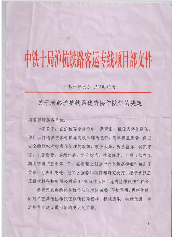 滬杭高鐵是國家鐵路“十一五”規(guī)劃中滬杭甬客運(yùn)專線的一部分,全長160公里,正線長158.8公里,建設(shè)里程為153公里,其中嘉興境內(nèi)里程約85公里,于去年2月26日啟動(dòng)建設(shè)。作為滬杭高鐵的重要組成部分,嘉興段以“創(chuàng)造滬杭客專速度,建設(shè)世界高鐵品牌”為目標(biāo),在建設(shè)中創(chuàng)下了全線多項(xiàng)第一。中鐵十局承建的滬杭客專5標(biāo)段,線路全長28.785公里,主要包括嘉桐、步云兩座特大橋和嘉興南站。 該標(biāo)段的橋面附屬工程由我公司負(fù)責(zé)施工建設(shè),包括橋面及路基的欄桿、電纜槽、欄桿遮板、聲屏障遮板、RPC蓋板的預(yù)制和安裝。整個(gè)工程工期緊、任務(wù)重,僅2010年1月12日至2010年5月10日118天里我們就全部高質(zhì)量的完成了28.785公里的全部橋面附屬工程的預(yù)制和安裝任務(wù)。中鐵十局授予我公司優(yōu)秀協(xié)作隊(duì)伍稱號(hào)。
