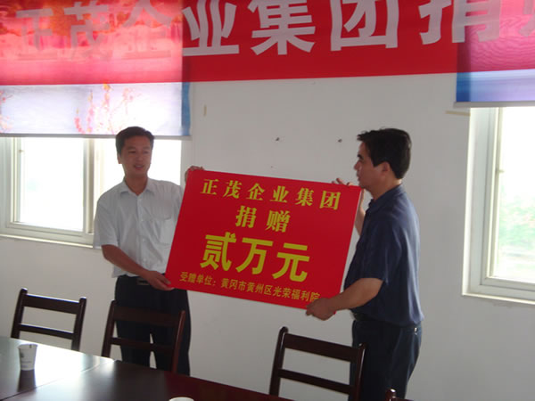 2012年5月18日,正茂企業(yè)集團(tuán)副總經(jīng)理徐建一行代表公司向黃州區(qū)光榮福利院捐款兩萬(wàn)元和生活物資,黃州區(qū)民政局汪局長(zhǎng)和福利院李院長(zhǎng)等人陪同。