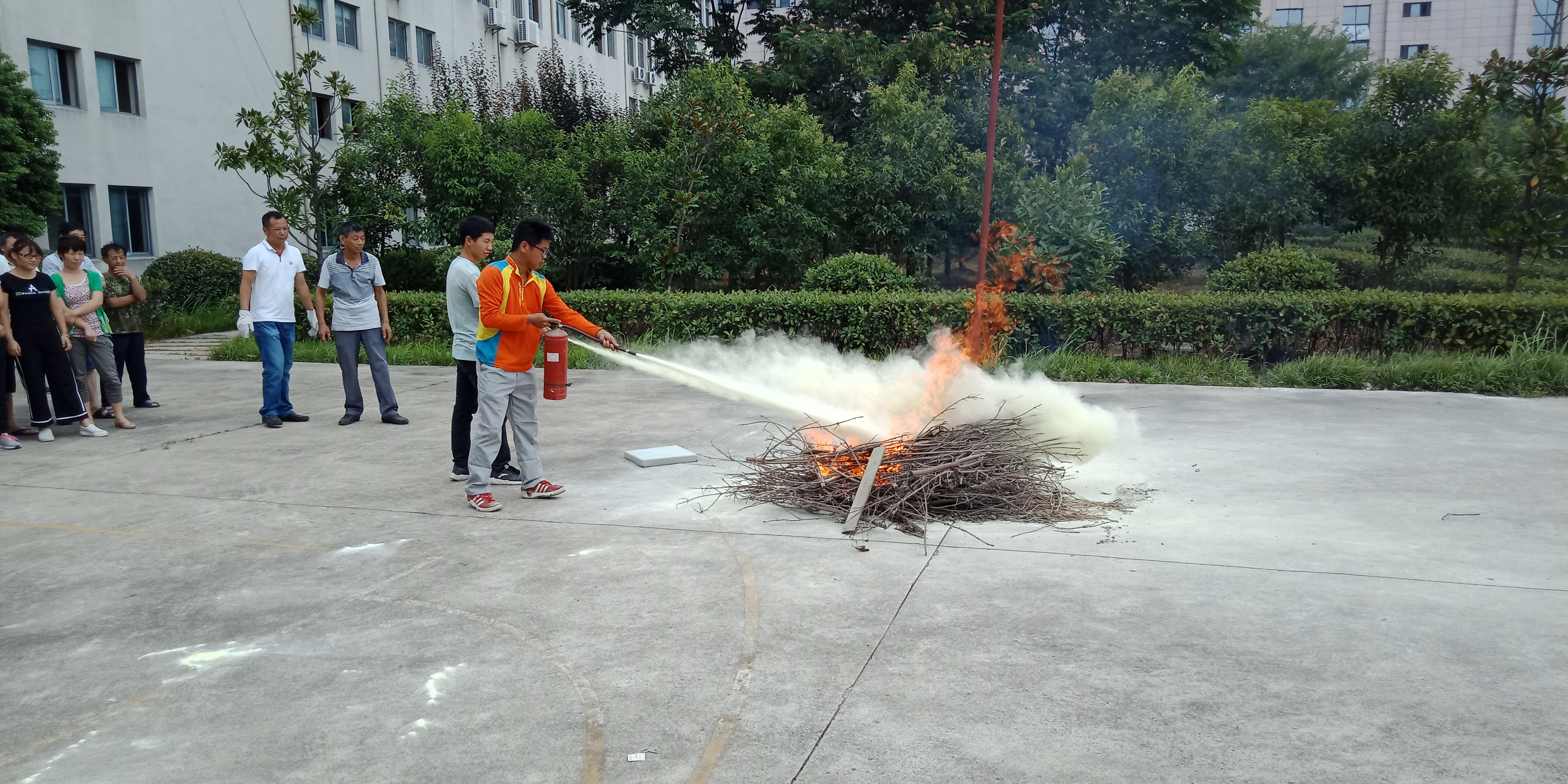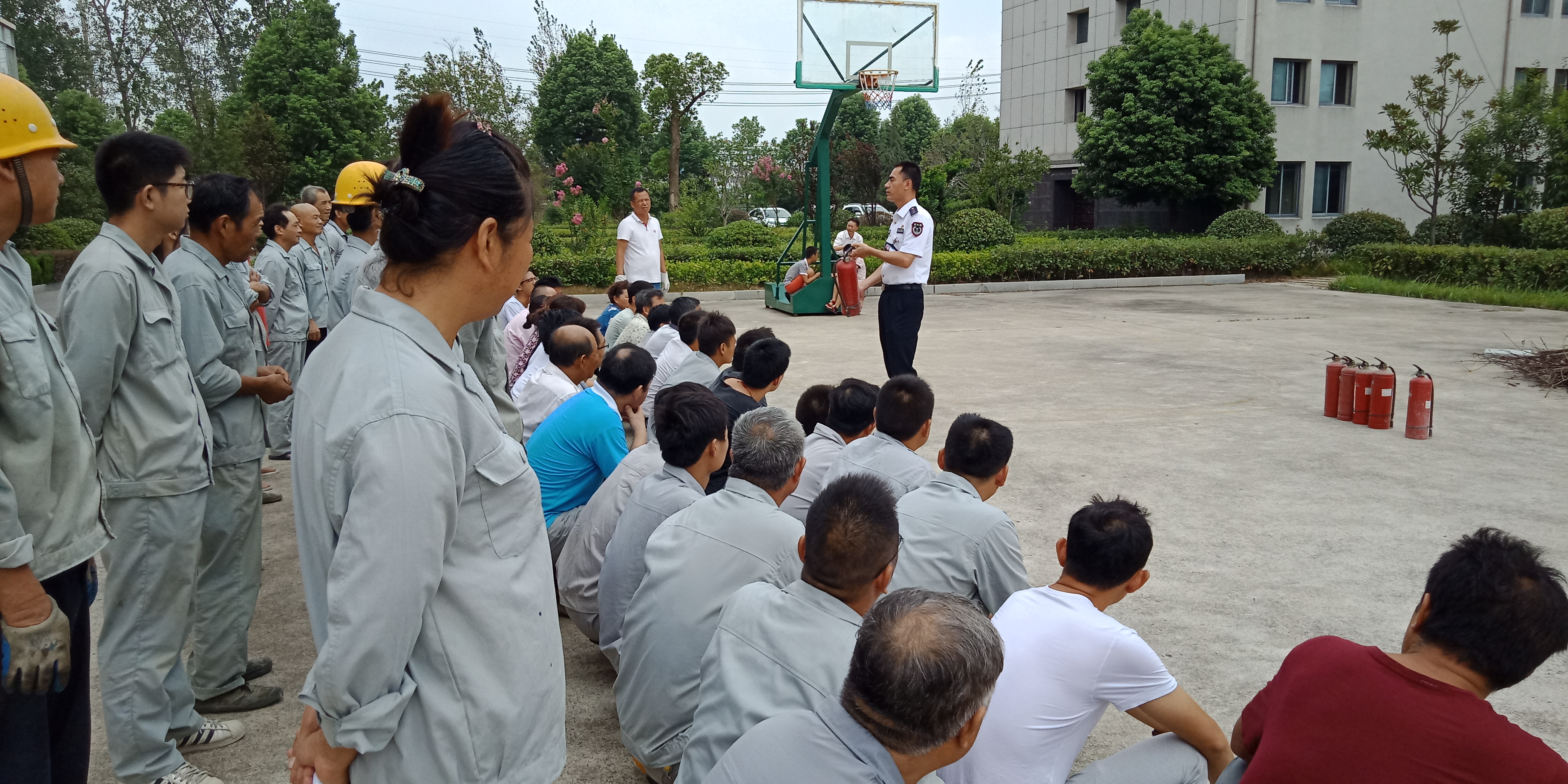 上午10:30,在籃球場(chǎng)進(jìn)行了滅火演習(xí),全體管理人員及來自各車間的工友都認(rèn)真