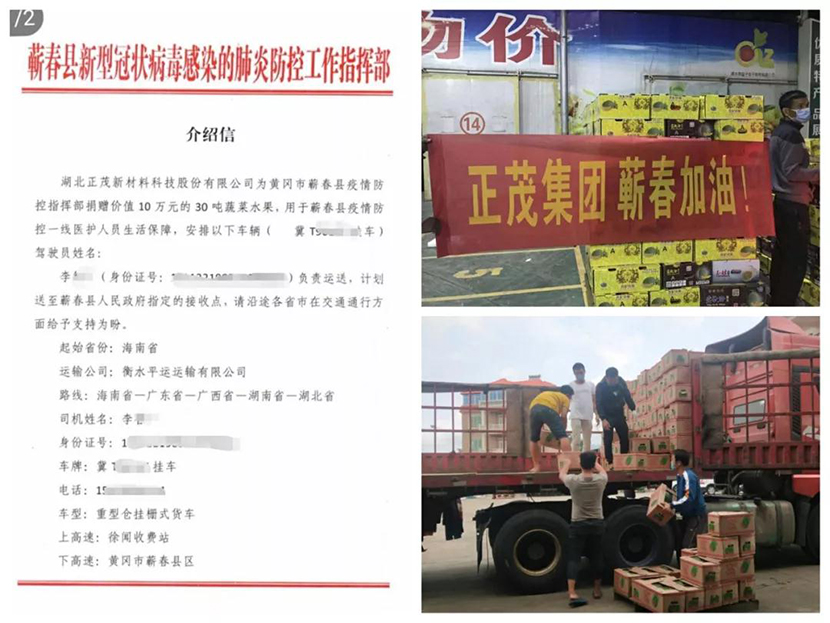 2月19日,集團(tuán)從海南采購(gòu)的價(jià)值10萬(wàn)元蔬果共計(jì)30噸運(yùn)抵蘄春縣,支援蘄春抗擊疫情。