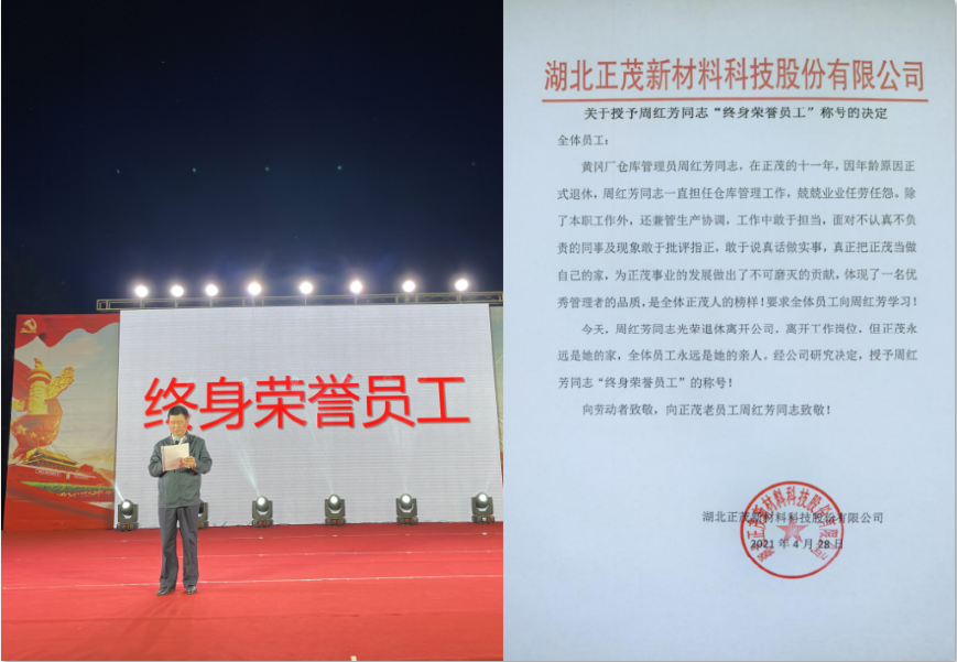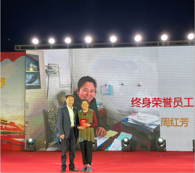管正兵為“終身榮譽員工”周紅芳授獎