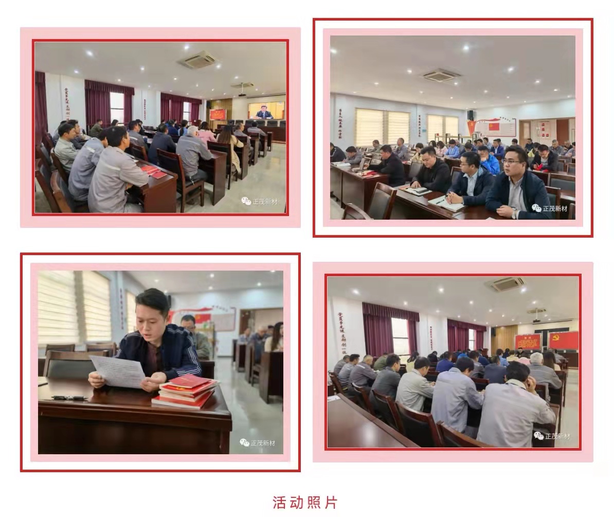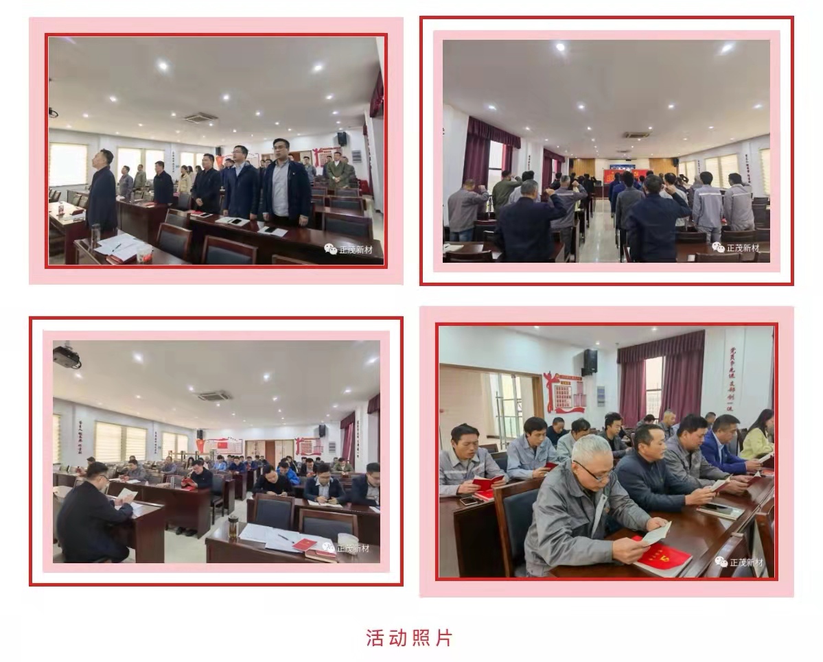 2021年10月23日,湖北正茂新材料科技股份有限公司黨支部公司全體黨員、入黨積極分子以“守初心 擔(dān)使命 同奮斗 共筑夢”為主題舉行了本月支部主題黨日活動。
