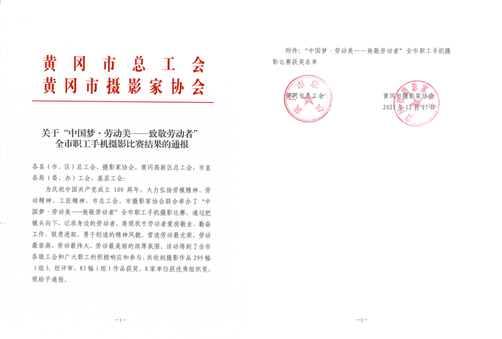 我司職工徐亞敏參加2021年黃岡市總工會、市攝影家協(xié)會聯(lián)合舉辦的“中國夢•勞動美——致敬勞動者”全市職工手機(jī)攝影比賽并榮獲該比賽三等獎及優(yōu)秀獎兩個獎項。