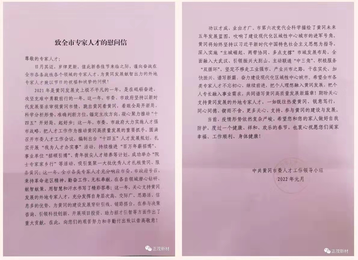 何部長表示:過去的一年正茂很努力,交出了一份滿意的成績單;組織部服務(wù)很賣力;新的一年我們要共同發(fā)力,市委組織部作為駐點(diǎn)單位要做好服務(wù),爭取讓正茂成為疫后黃岡市第一家上市的企業(yè)。