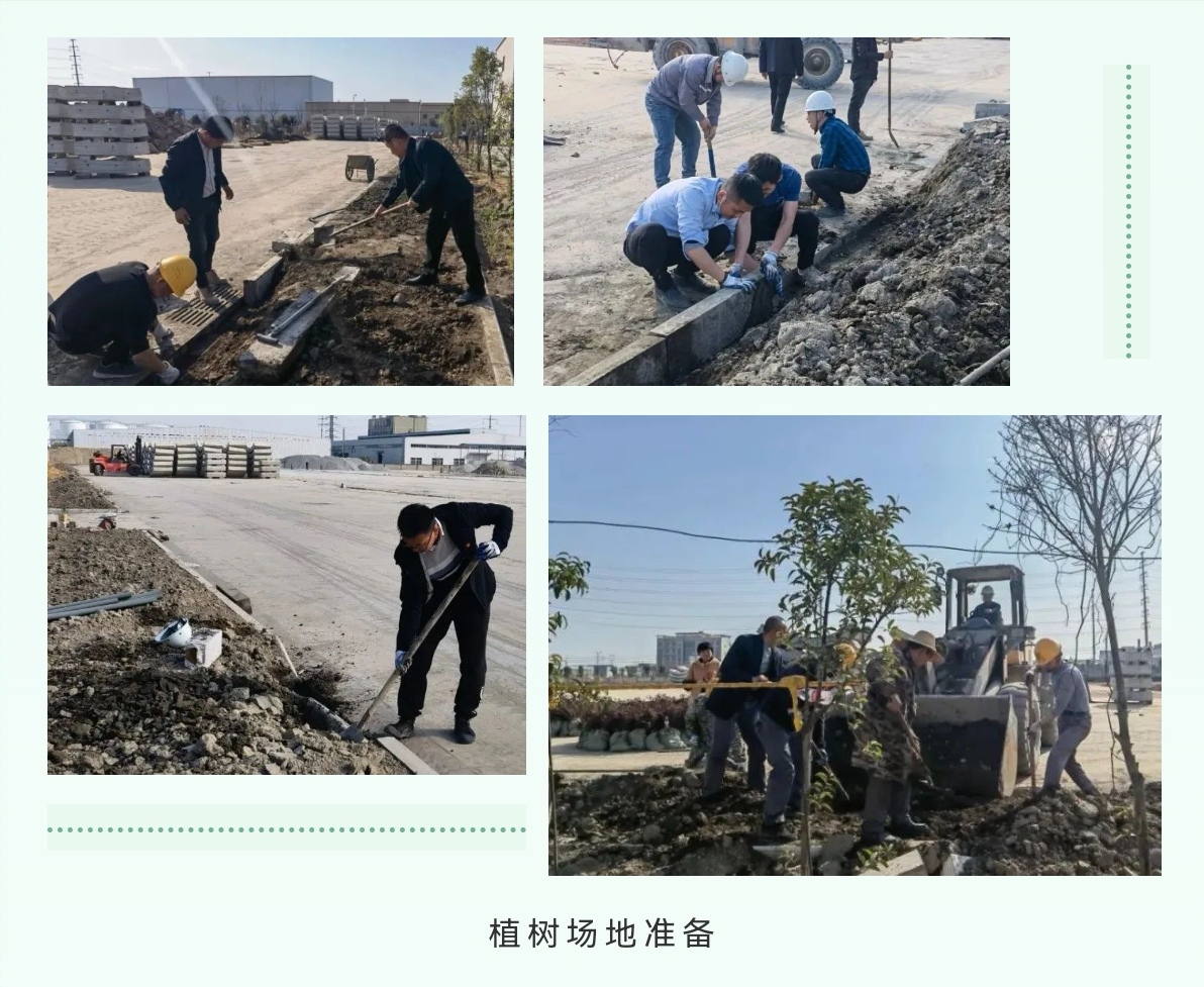 在植樹活動(dòng)現(xiàn)場,全體職工分工合作、密切配合。他們每道步驟都有條不紊、扎實(shí)有序,現(xiàn)場一派熱火朝天、干勁兒十足的熱鬧景象。