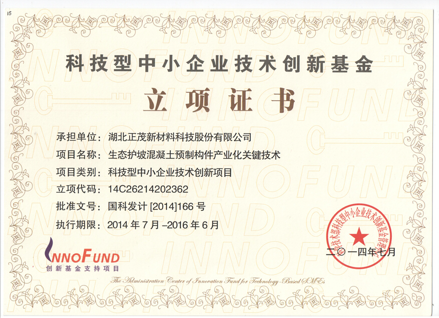 科技型中小企業(yè)技術創(chuàng)新基金立項證書